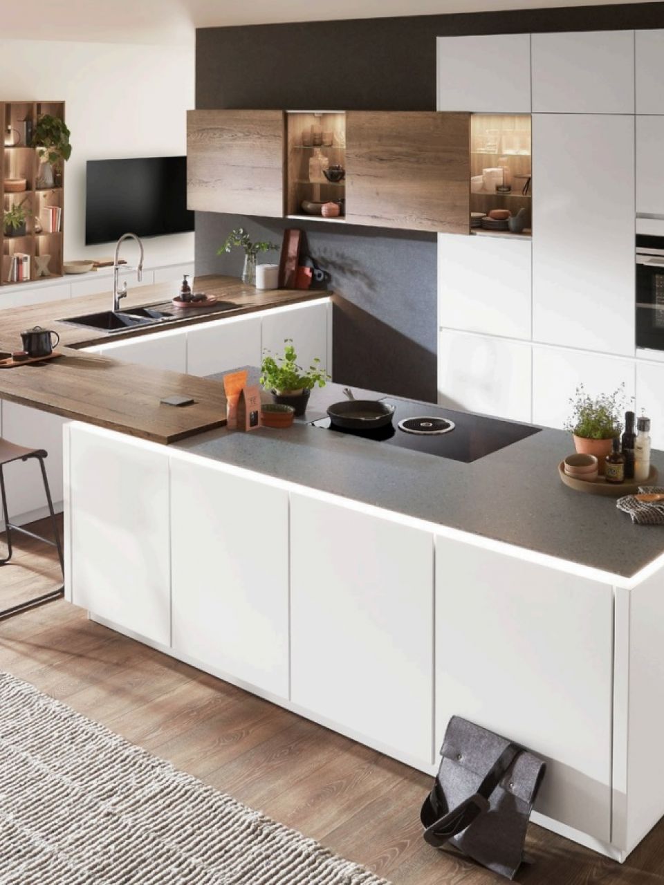 Nicht nur Platzersparnis, sondern auch eine effiziente und gut organisierte Arbeitsumgebung. Sie integriert alles, was für eine funktionale Küche notwendig ist, und schafft eine angenehme Atmosphäre beim Kochen und Genießen.
