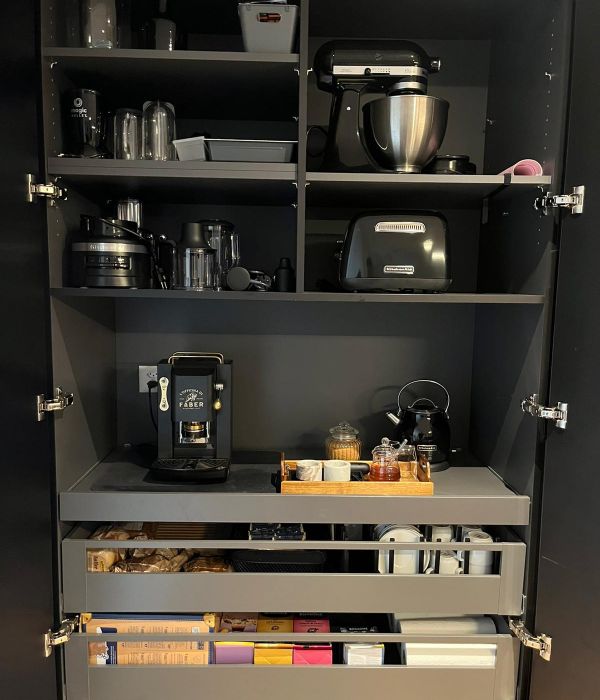 Durch die richtige Anordnung der Küche in zwei Reihen können Sie sich unnötige Wege beim Kochen ersparen. Es empfiehlt sich, die beiden Kücheneinheiten in einen Arbeitsbereich und einen Lagerbereich zu unterteilen. Der Arbeitsbereich umfasst eine Arbeitsfläche, ein Kochfeld und eine Spüle, die alle für die Zubereitung von Mahlzeiten notwendig sind. Kühlschränke, Geschirrspüler und Hochschränke werden in den Lagerbereich gestellt, da sie zur Aufbewahrung von Geschirr und Lebensmitteln dienen. Eine solche Anordnung sorgt für einen angenehmen Arbeitsablauf in der Küche.