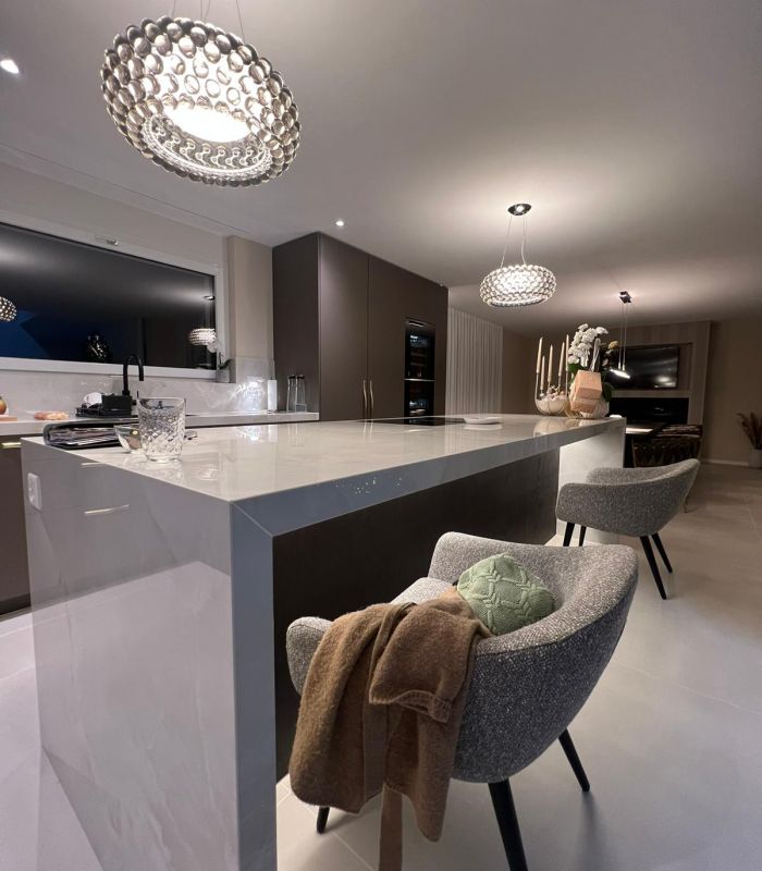 In einer zweireihigen Küche werden in der Regel zwei Küchenelemente einander gegenüber oder entlang zweier benachbarter Wände platziert. Im Gegensatz zu L-förmigen Küchen sind diese Elemente nicht miteinander verbunden und verfügen nicht über eine durchgehende Küchenarbeitsfläche. Dadurch sind sie ideal für Räume mit schmalen Seiten, die über Türen und Fenster verfügen. Die Flexibilität dieses Küchendesigns ermöglicht verschiedene Anordnungen, beispielsweise die Nutzung der zweiten Kücheneinheit als Esstisch in der Wohnküche, wodurch eine klare Trennung zwischen Koch- und Wohnraum entsteht.